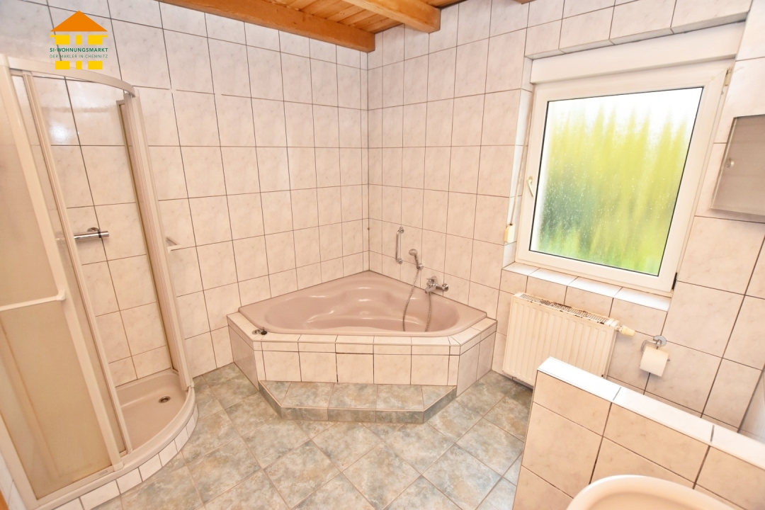 - Tageslichtbad mit großer Eckbadewanne und Dusche /