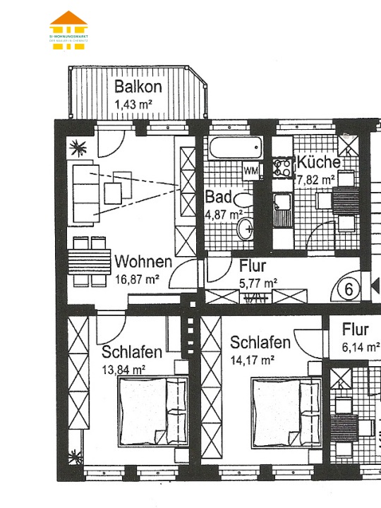 Lutherstraße 28 - WE 06 - 2-Raum-Wohnung in 09126 Chemnitz