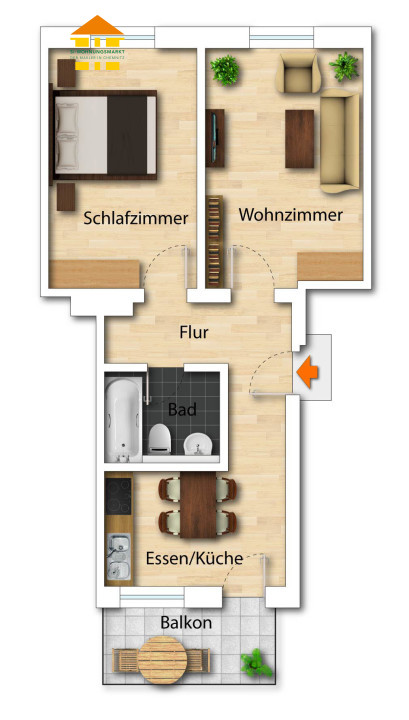 Jahnstraße 64 - WE 28 - 2-Raum-Wohnung in 09126 Chemnitz - Verkauf