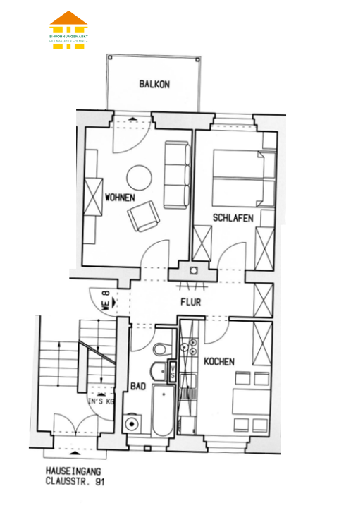 Clausstraße 91 - WE 08 - 2-Raum-Wohnung in 09126 Chemnitz