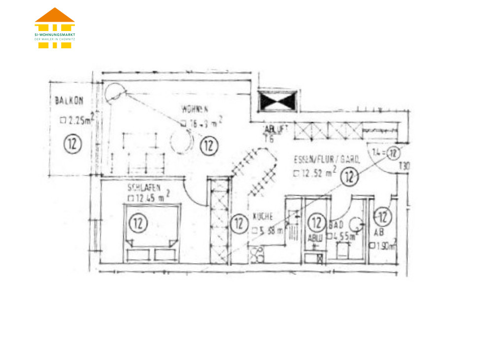 - 52,00 qm 2 Raum Wohnung 0 km