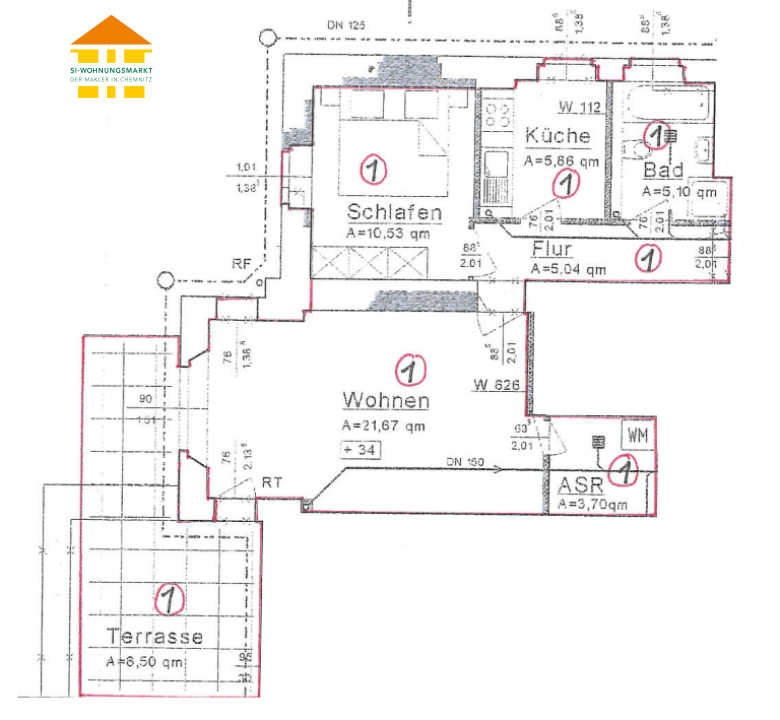 Chemnitzer Straße 180 - WE 01 - 2-Raum-Wohnung in 09224 Chemnitz - Verkauf