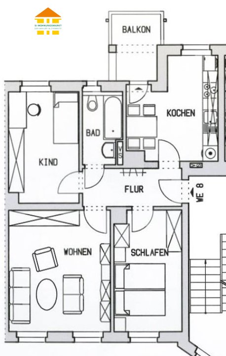 - Balkon mit ruhiger, hofseitiger Ausrichtung: zusätzlicher Wohnkomfort /