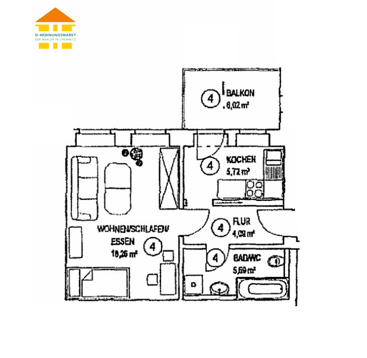 Straße der Nationen 126 - WE 04 - 1-Raum-Wohnung in 09113 Chemnitz - Verkauf