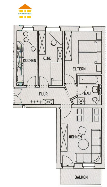 3 Raum Wohnung