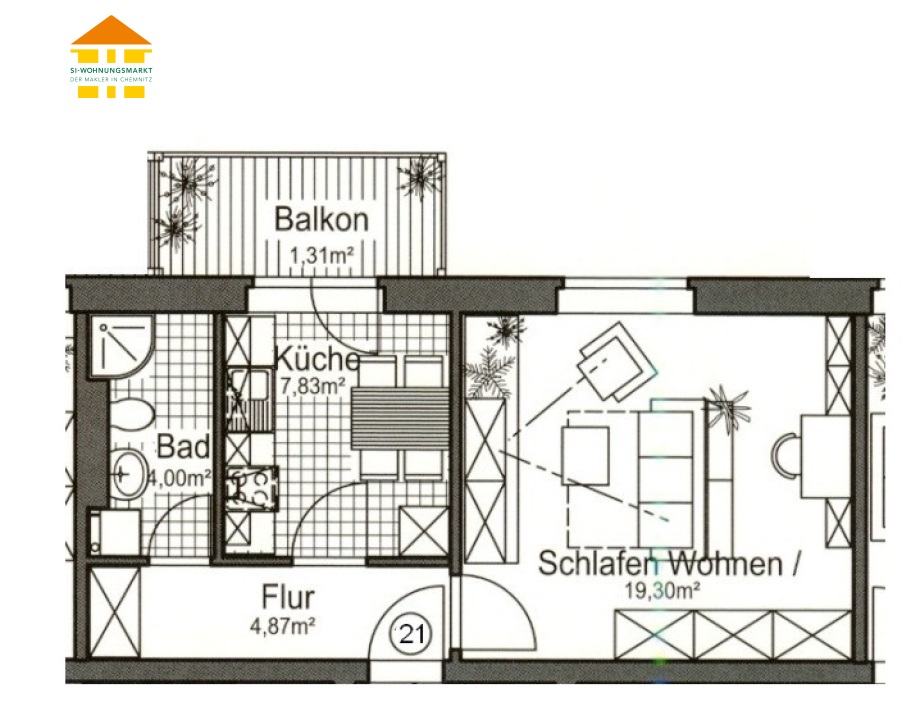 Zschopauer Straße 247 b - WE 21 - 1-Raum-Wohnung in 09126 Chemnitz