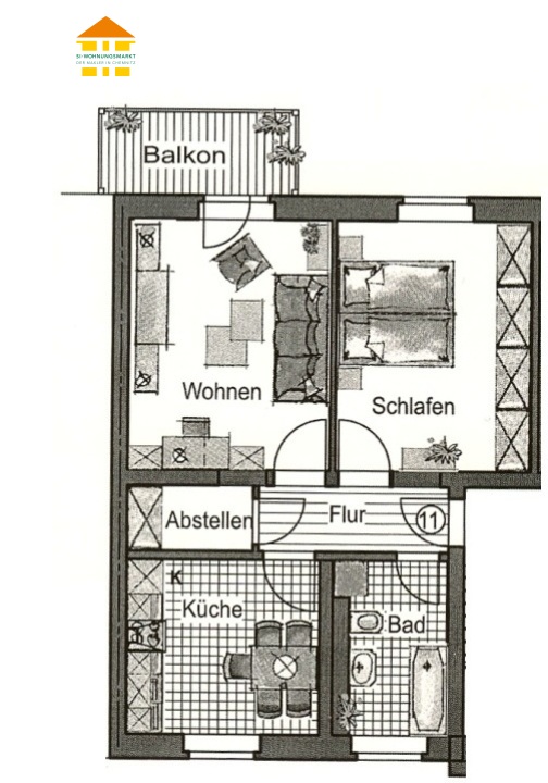 Zschopauer Straße 231 - WE 11 - 2-Raum-Wohung in 09126 Chemnitz