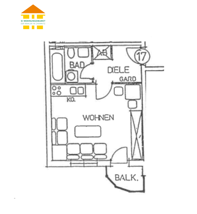 Casparistraße 2 - WE 17 - 1-Raum-Wohnung in 09126 Chemnitz - Verkauf