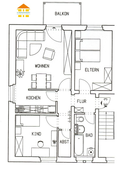 Grüner Winkel 1 - WE 05 - 3-Raum-Wohnung in 09127 Chemnitz